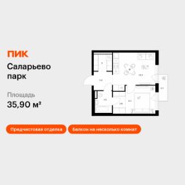 Продаётся 1-комн. квартира площадью 35,9 кв.м на 13 этаже 22 этажного дома (Корпус 57.3, Секция 3) проекта ПИК Саларьево парк. Светлый просторный подъезд на уровне земли, функциональная планировка, большие окна, предчистовая отделка.