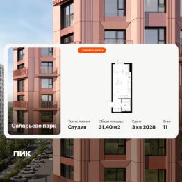 Продаётся квартира-студия площадью 31,4 кв.м на 10 этаже 14 этажного дома (Корпус 69.6, Секция 6) проекта ПИК Саларьево парк. Светлый просторный подъезд на уровне земли, функциональная планировка, большие окна, c отделкой.