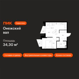 Новостройка! Продается 1-комн. кв-ра площадью 34,3 кв.м, (Корпус 1.1.4, Секция 4) 8 этаж 9-этажного дома в Онежский вал от ПИК. Квартал "Серии плюс" строится на севере Москвы, в 10 минутах пешком от станции метро "Селигерская" и МЦД "Моссельмаш". Проект понравится всем, кто привык к комфортной жизни и ценит возможность оставаться в ритме большого города и быстро добираться до центра столицы.