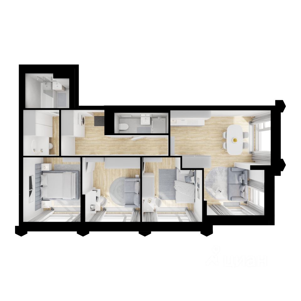 В "Бусиновском парке" предусмотрены квартиры с панорамным остеклением, различными балконами, эркерами, угловыми окнами и большим количеством окон — до пяти в одной комнате. В таких квартирах широкий угол обзора: можно пить кофе, наблюдая за жизнью на улице и наслаждаясь ощущением простора. Ещё больше комфорта придаст мягкий солнечный свет, который равномерно осветит всю квартиру. Артикул 953801 (Зас
