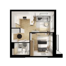 В корпусе 1.4 появится общественная терраса на 30-м этаже. Доступ сюда есть только у жителей, поэтому вы не встретите в этом пространстве посторонних людей. Здесь можно заниматься спортом, отдохнуть за чтением книги или создать собственный сад. А ещё отсюда открываются красивые виды на город.