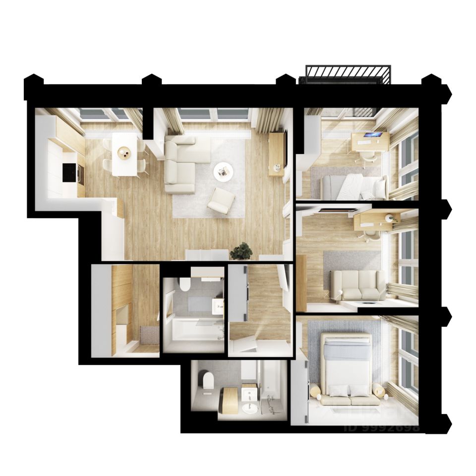 В "Бусиновском парке" предусмотрены квартиры с панорамным остеклением, различными балконами, эркерами, угловыми окнами и большим количеством окон — до пяти в одной комнате. В таких квартирах широкий угол обзора: можно пить кофе, наблюдая за жизнью на улице и наслаждаясь ощущением простора. Ещё больше комфорта придаст мягкий солнечный свет, который равномерно осветит всю квартиру. Артикул 954108 (Заст