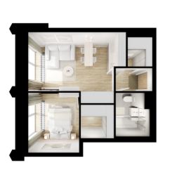 В корпусе 1.4 появится общественная терраса на 30-м этаже. Доступ сюда есть только у жителей, поэтому вы не встретите в этом пространстве посторонних людей. Здесь можно заниматься спортом, отдохнуть за чтением книги или создать собственный сад. А ещё отсюда открываются красивые виды на город.