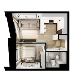 В корпусе 1.4 появится общественная терраса на 30-м этаже. Доступ сюда есть только у жителей, поэтому вы не встретите в этом пространстве посторонних людей. Здесь можно заниматься спортом, отдохнуть за чтением книги или создать собственный сад. А ещё отсюда открываются красивые виды на город.