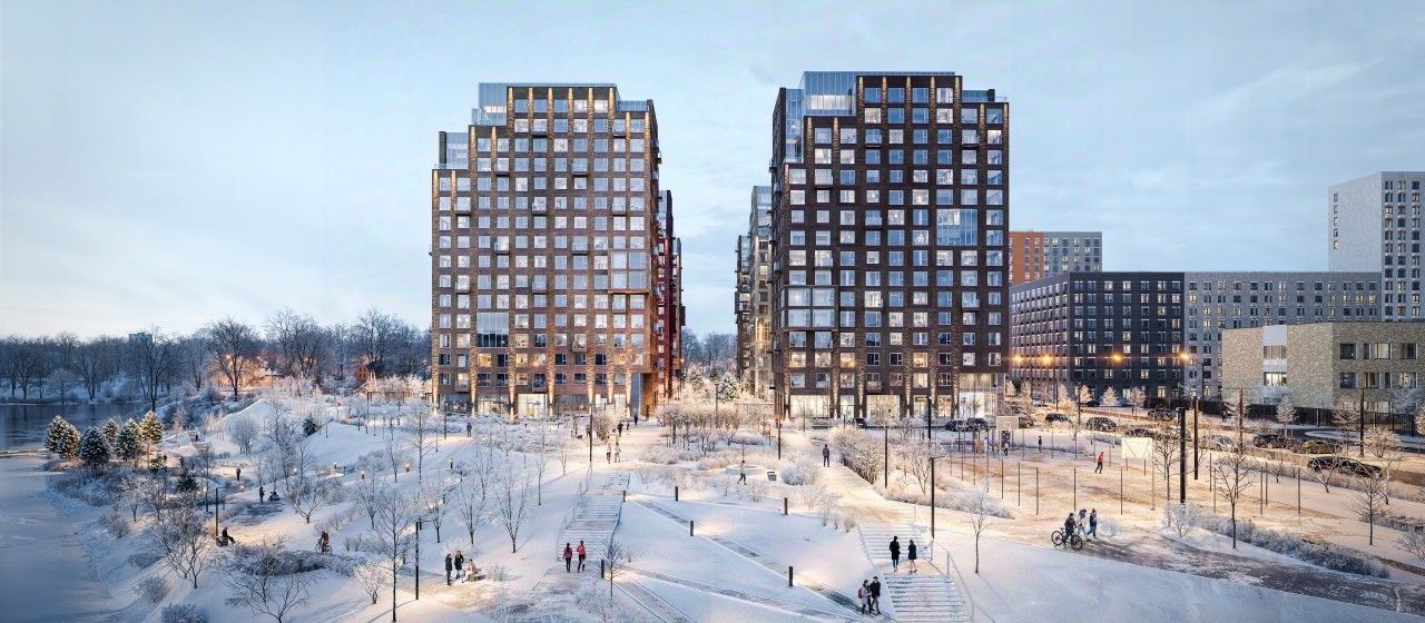 Камерный квартал в Новой Москве, на берегу Ивановского пруда. Одна из ключевых особенностей проекта — квартиры с панорамным видом на воду.