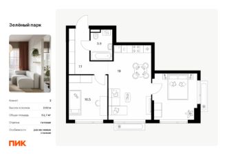 Продаётся 2-комн. квартира площадью 52,7 кв.м на 13 этаже 21 этажного дома (Корпус 5.2, Секция 1) проекта ПИК Зелёный парк. Светлый просторный подъезд на уровне земли, функциональная планировка, большие окна, c отделкой.
