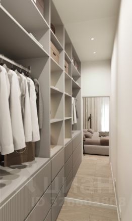 - Мастер-зона с гардеробной. Просторное место для отдыха и удобного хранения вещей.