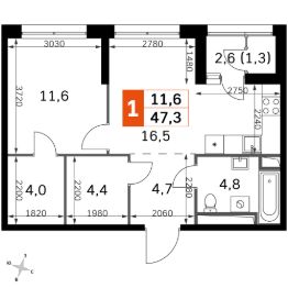 Продаётся 1-к квартира номер 803 общей площадью 47.3 кв.м. на 16-м этаже 23 этажного здания. Чистовая отделка. Цена с учётом скидки.