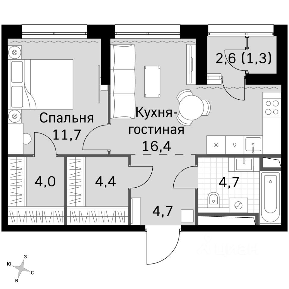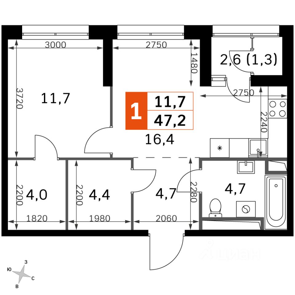 Продаётся 1-к квартира номер 747 общей площадью 47.2 кв.м. на 2-м этаже 23 этажного здания. Чистовая отделка. Цена с учётом скидки.