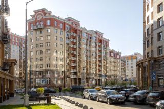 Роскошные входные группы, отделанные мрамором, с высотой потолков 4,5 м, белыми лепными карнизами и стойкой ресепшн с авторской отделкой создают атмосферу уюта, полностью отражая дух и воплощение уникальной архитектурной концепции 30-40 годов, являясь ее логическим продолжением.