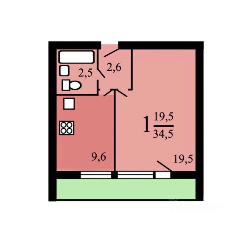 19,5 м²