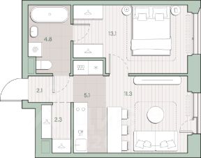 Продаётся 1-комнатная квартира общей площадью 38.7 кв.м. без отделки. Квартира расположена на 6 этаже корпуса 5.5 в жилом комплексе бизнес-класса "Среда на Лобачевского" в пешей доступности от метро "Аминьевская".