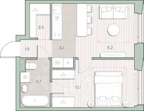 Продаётся 1-комнатная квартира общей площадью 38.5 кв.м. без отделки. Квартира расположена на 23 этаже корпуса 5.5 в жилом комплексе бизнес-класса "Среда на Лобачевского" в пешей доступности от метро "Аминьевская".