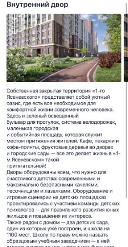 ЖК "1-ый Ясневский" — это современный жилой комплекс с развитой инфраструктурой. Отличное расположение, удобная транспортная доступность, благоустроенная территория.