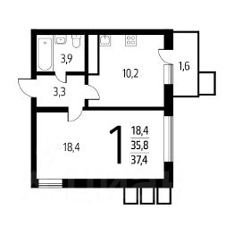 - жилая площадь 18.4 м²;