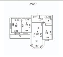 Продается светлая, просторная 3-комн квартира 69 кв.м. Жилая площадь - 44,9 кв.м. Комнаты смежно-изолированные: 20,7 кв.м., 12,1 кв.м. + 12,1 кв.м. с выходом на большую застекленную лоджию. Кухня - 12 кв.м. Раздельный санузел. Высота потолков - 3 м. Окна выходят на улицу.