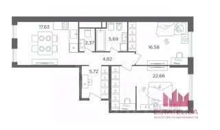 Id 60542. Продается ЕВРО 3-х комнатная квартира в ЖК Headliner!