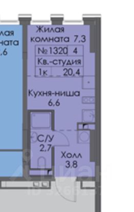 > Планировка: Продуманная студия 20.4 м² с выделенными функциональными зонами.