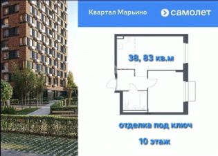 Продается просторная большая Евро 2-х комнатная квартира комфорт-класса 38,83 кв.м., на 10 этаже, в ЖК "Квартал Марьино"