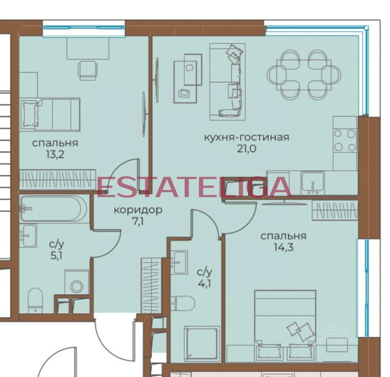 Id 60567. ШИКАРНАЯ ЕВРОТРЕШКА В 5 КВАРТАЛЕ ОСТРОВА!