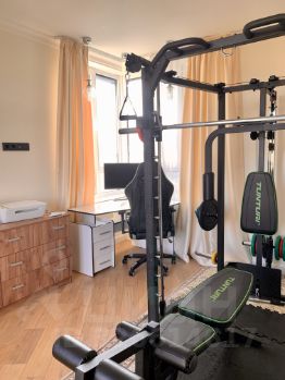 Квартира полностью меблирована и оснащена всей необходимой встроенной техникой. На кухне установлена встроенная бытовая техника Bosch: духовой шкаф, микроволновая печь и холодильник. В квартире также установлены стиральная и сушильная машины Siemens, телевизоры Samsung и система кондиционирования Mitsubishi. Выполнен высококачественный ремонт с использованием современных материалов.
