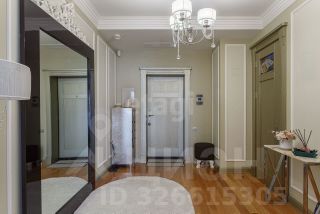 Планировка включает объединенную гостиную и кухню-столовую, три отдельные спальни, одну мастер-спальню с собственной ванной комнатой и панорамными окнами, две гардеробные и просторный холл с гостевым санузлом. Квартира полностью меблирована мебелью из массива и укомплектована встроенной бытовой техникой брендов Kuppersbusch, Liebherr и Asko. Жилой комплекс расположен в экологически благополучном районе Раменки, в шаговой доступности от Ботанического сада МГУ, лесопарковой зоны Воробьёвых гор и парка Победы.