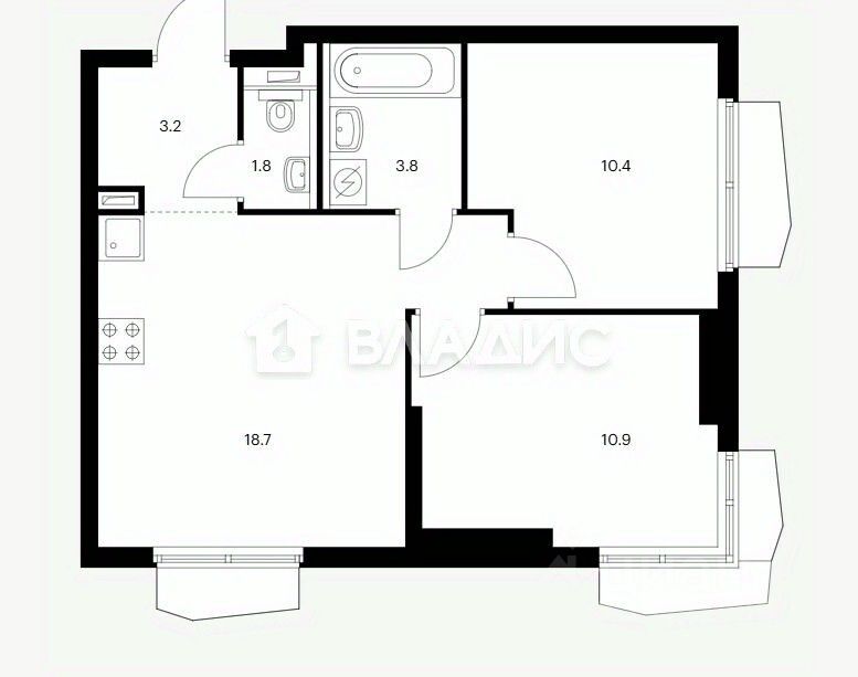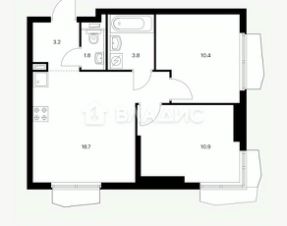 Две изолированные комнаты - 10,9 + 10.4 кв.м.