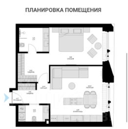 — Просторная кухня-гостиная 27 м² с обеденной группой и зоной отдыха — центр притяжения квартиры.