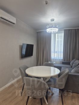 Квартира выполнена в современном стиле с евроремонтом. Просторная кухня полностью укомплектована мебелью и техникой: холодильник, посудомоечная машина и кондиционер. В жилых комнатах также есть необходимая мебель. В апартаментах два отдельных санузла, один из которых оборудован ванной. Для вашего удобства в квартире установлены телевизор и стиральная машина, а также подключен интернет.