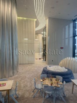 • Интерьеры лобби созданы по авторскому дизайн-проекту. С потолками до 8,7 м, окнами в пол, стойками ресепшн и мягкими зонами ожидания. Для жителей оборудованы фитнес-рум, детский клуб, лайнж и пространства для деловых встреч.