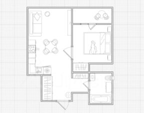 Общая жилая площадь - 40.8 м² , с учетом лоджии - 43.7 м²