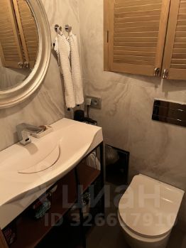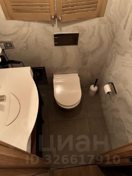 Туалетная комната: умывальник из литьевого мрамора с сенсорным краном, подвесной унитаз (Испания), пол из керамогранита с подогревом (DEVA).