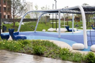 - Изюминка внутренней территории ЖК Ever — двор на крыше стилобата, двор без машин, закрытая территория.