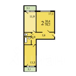Комнаты и кухня хорошей площади: 17 м² и 13 м² и кухня 12 м².