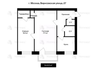 Продаётся 2-комнатная квартира 43,3 м² на комфортном 3 этаже в кирпичном доме.