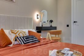 Квартира оборудована всей необходимой техникой: посудомоечной машиной, духовым шкафом, холодильником, индукционной варочной панелью, стиральной машиной. Для удобства хранения в прихожей расположен шкаф, а в комнате отдельная гардеробная, где можно разместить все необходимое. В каждом помещении продумано несколько сценариев освещения, которые придают особый уют и тепло. Вся мебель, техника и аксессуары остаются будущим владельцам. В квартире есть два просторных балкона.