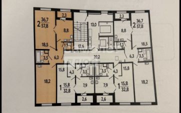 - Общая площадь: 56,6 м²; потолки 2,7 м. Окна на две стороны.