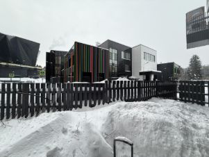 Дом расположен в жилом комплексе Russian Design District, на территории которого обеспечен удобный автомобильный подъезд и подземный паркинг. Отличная транспортная доступность — до станции метро Ольховая всего 17 минут на транспорте.