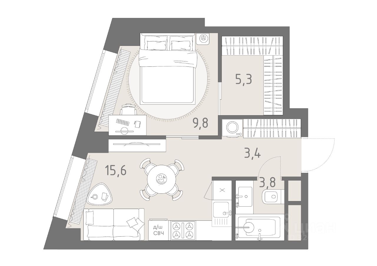 Продуманная европланировка, которую легко зонировать под ваши запросы. Потолки от 3,1 м.