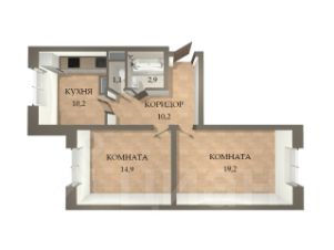 БАЛКОНА НЕТ!! Но плюс в том, что вся площадь квартиры является полезной, и увеличено фактическое пространство квартиры. Перепланировок нет. Кухня 10,2 кв.м. Комнаты 19,2 и 14,9 кв.м. Санузел раздельный. Комнаты изолированные.