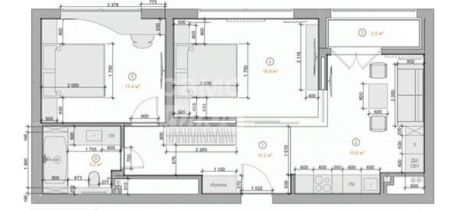 2 равноценные комнаты по 15 метров ( одна закрывается выдвижной шторой, при желании можно спокойно изолировать).