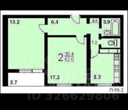 - Oбщая площaдь 52,4 кв.м, кoмнaтa 17,2 кв.м + 13,2м совмещенная с балконом 2,7кв.м, кухня 8,3 кв. м,