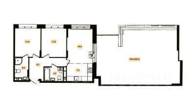 - кухня-гостиная 21 кв. м. (можно организовать 3-ю изолированную комнату (кабинет и т.д.),