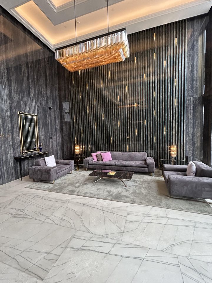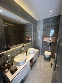 В квартире выполнен качественный евроремонт. Высокие потолки 3.1 метра создают ощущение простора и света. Планировка включает две спальни, просторную кухню-гостиную и два совмещенных санузла, что удобно для семьи, так же есть гардеробная комната. Благодаря панорамным окнам в квартире всегда много дневного света.