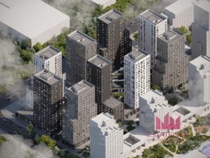 Id 60586. Жилой квартал "Shagal" представляет собой проект комплексного освоения территории. Над созданием концепции жилого комплекса работало архитектурное бюро Buromoscow. Главной особенностью комплекса является соседство разных типологий застройки и форматов жилья — от таунхаусов до небоскребов. Весь район спроектирован на основе принципа 15-минутной доступности необходимой инфраструктуры и продуманных прогулочных маршрутов.