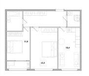 Планировка включает в себя: большую кухню-гостиную со встроенной мебелью и бытовой техникой, две изолированные спальни, одна из которых с лоджией-кабинетом, два санузла, широкий коридор со встроенными шкафами.