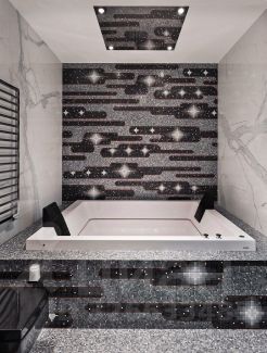 Индивидуальное мозаичное панно Bisazza, spa-душ Axor 10001000, немецкая лаковая мебель, ванна Antonio Lupi.