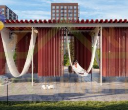 шезлонгами и качелями для отдыха.