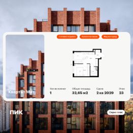 Новостройка! Продается 1-комн. кв-ра площадью 32,65 кв.м, (Корпус 3.4, Секция 4) 22 этаж 32-этажного дома в Квартал Мит от ПИК. "Квартал Мит" строится в экологически чистом районе Митино, где по соседству расположен большой лесопарк, а с двух сторон протекают реки Сходня и Журавка. Для семей с детьми здесь появится школа и два детских сада.