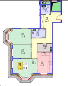 Состояние квартиры: без отделки,свободной планировки - позволит реализовать любую дизайнерскую идею, высота потолка 3,40 метра. Высокий 5 этаж открывает красивые виды на ландшафтную территорию проекта.